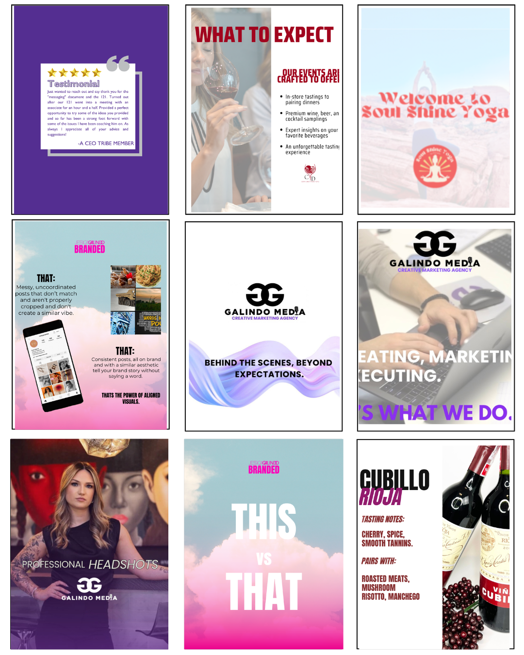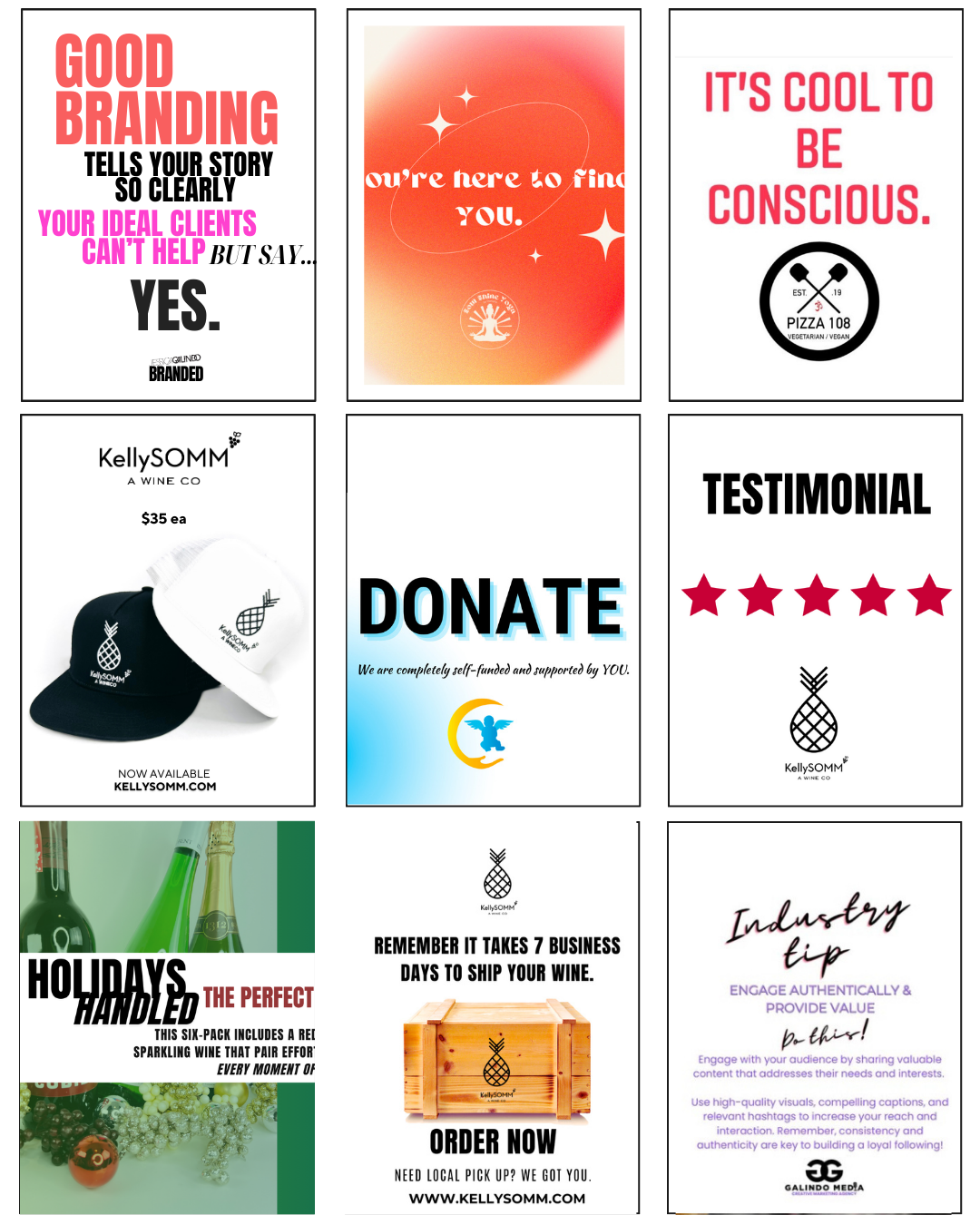 6 strategic reusable, editable posts that are brand templates: 3 pinned posts (Logo, Intro, Service) + 3 more on brand posts see details on our IGNITE YOUR INSTAGRAM page. Your post needs dertermine whether you need STANDARD package or PREMIUM package. We will discuss this on our call.